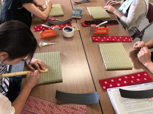 手早く綺麗、とても素敵なミニMY畳がたくさん出来ました。熱中症になりそうな気候が続いている中、クーラーの効いた涼しいお部屋で快適に講習ができ、感謝しております。